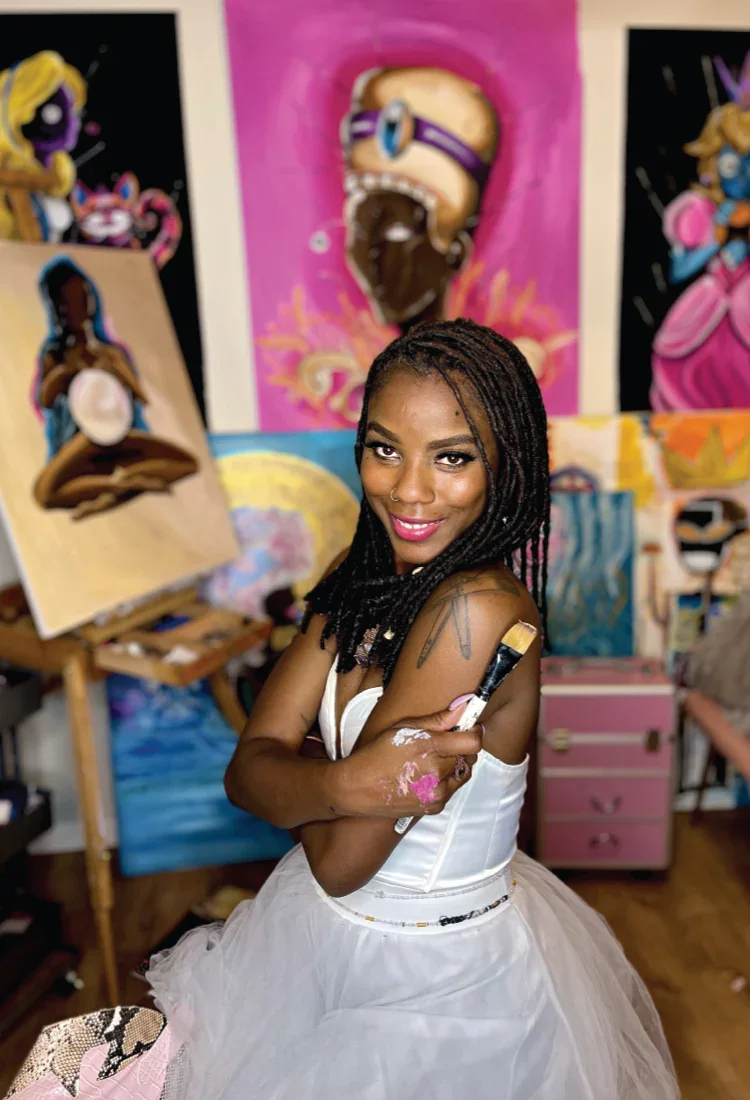 A self-taught surrealist painter and tattoo artist based in St. Louis, known for her faceless portraits and skeleton flower motifs. As owner of House of Art Doll in Delmar Loop, she blends personal narrative and visual impact—ideal for identifying creative talent and trend setters.